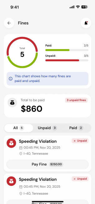 All your tickets, tolls, and fees in one place. With due dates.