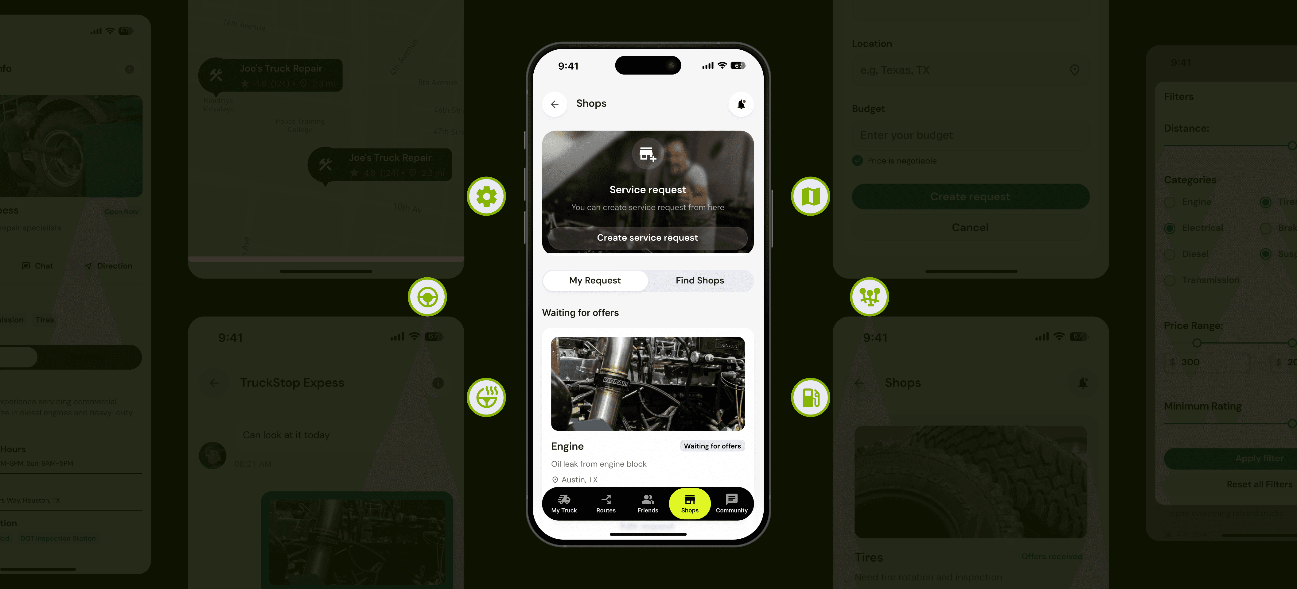 Find trusted truck services, shops, and stops along your route.