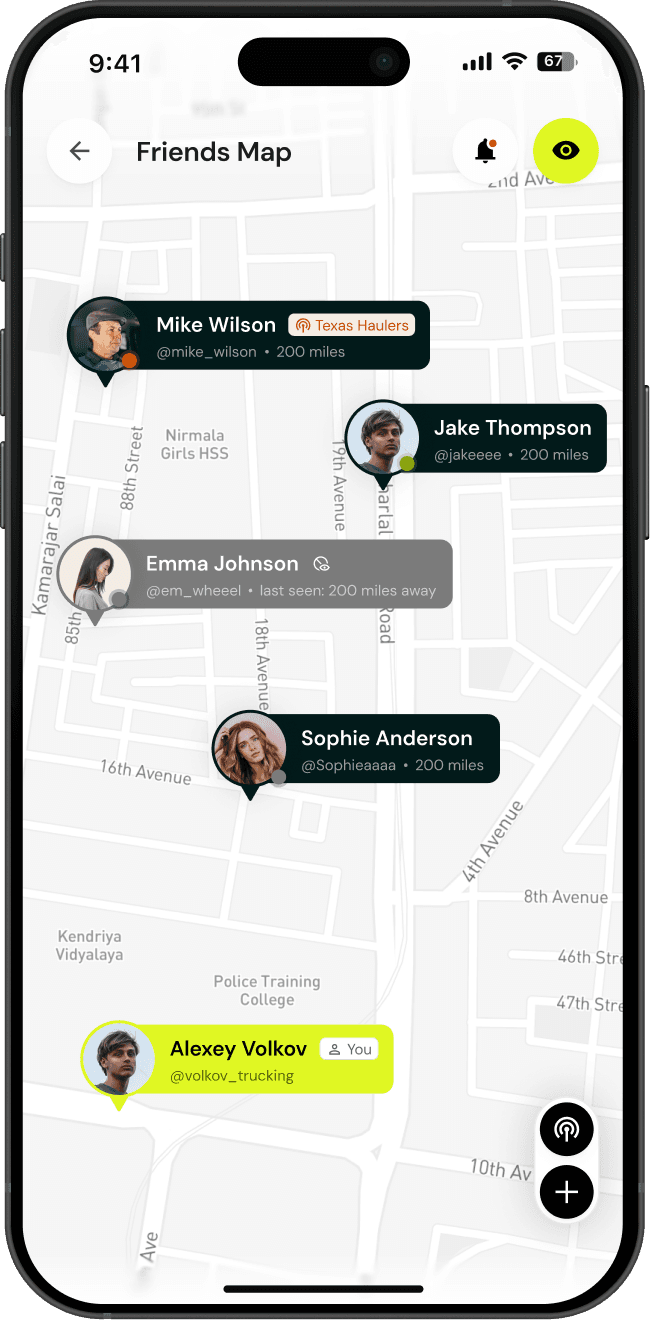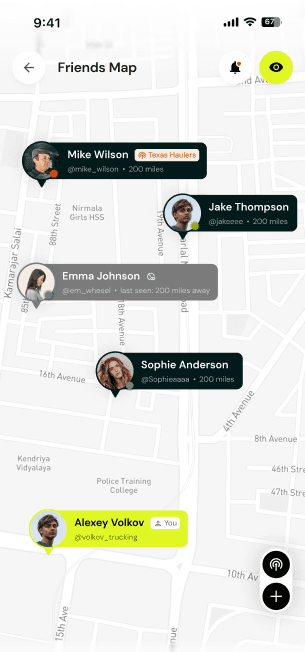 See who's nearby. Check their route and status.