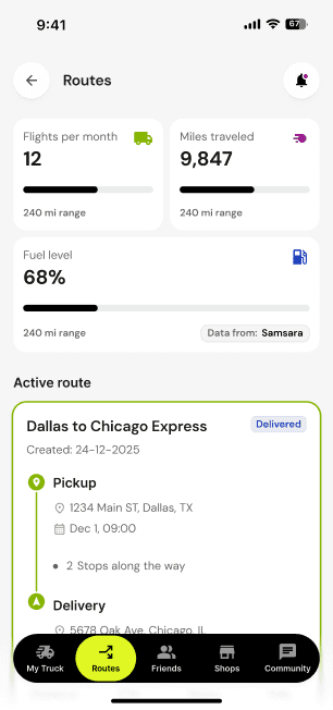 AI routes, cost savings, live alerts, and driver community โ one app.